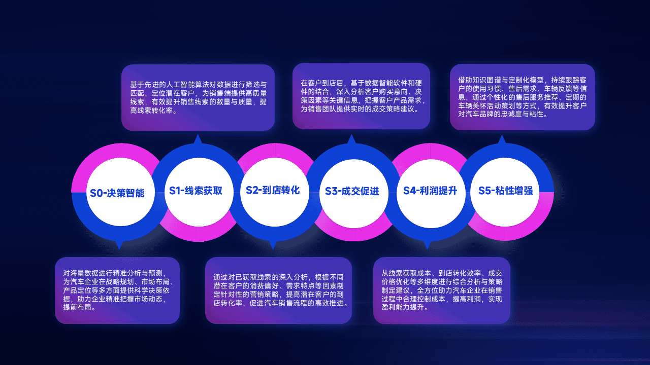 通过拓宽潜在客户来源、、、、优化线索分配并提高到店转化率,,以增强销售效率。。。。同时,,,,利用线索数据不断优化分析模型,,,有效提升转化率,,扩大营销影响力。。。。